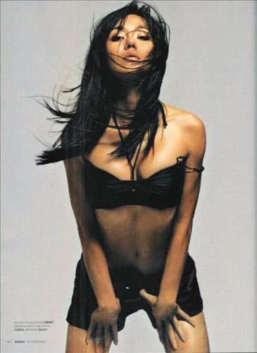 Appearing in a black tank-top and hot pants, Kim shows off her copper-tone skin as she flaunts her down-home sexiness. This is a departure from the innocent and sophisticated image of her character in “Lost”, which has now picked up a worldwide audience. The pictures were taken in a Los Angeles studio by fashion photographer Nino Munoz.