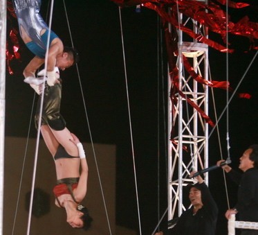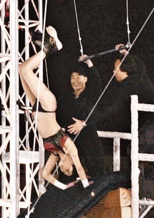 Hong Kong singer Yumika Cheng (郑希怡) revealed her T-back during a charity performance (欢乐满东华2006) organized by Hong Kong TVB. She was performing a flying trapeze act and her pant was pulled down by Chin Ka Lok (钱嘉乐) (a famous Hong Kong actor) when Chin tried to catch her while she swing over from the pedestal board. Yumika was thence fall down over the safety net.
