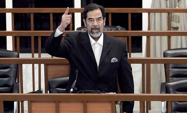 Held in custody by U.S. forces at Camp Cropper in Baghdad, on June 30, 2004, Saddam Hussein and eleven senior Ba’athist officials were handed over legally (though not physically) to the interim Iraqi government to stand trial for war crimes, crimes against humanity, and genocide. A few weeks later, he was charged by the Special Tribunal with crimes committed against the inhabitants of Dujail in 1982, following a failed assassination attempt against him. Specific charges included the murder of 148 people, torture of women and children and the illegal arrest of 399 others.