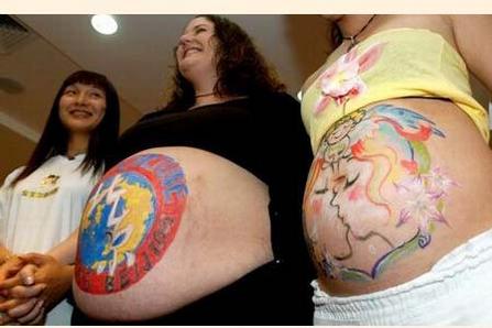 Funny Junk, Interesting StuffPregnant ladies show their stomach with nice drawing. Is interesting.
