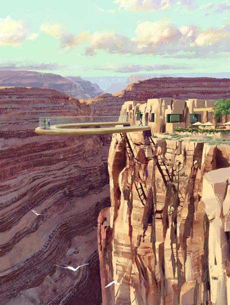 To help bolster their numbers, the tribe agreed to build the Skywalk, which will eventually be joined by a three-story visitors’ center, including a restaurant with patio seating along the canyon.