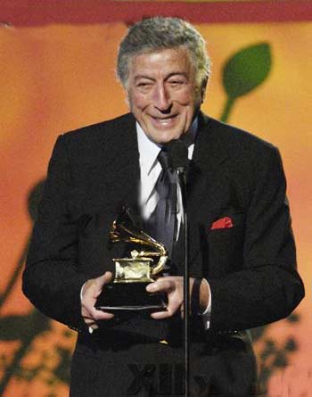 Tony Bennett accepts the award for Best Traditional Pop Vocal Album for “Duets: An American Classic”