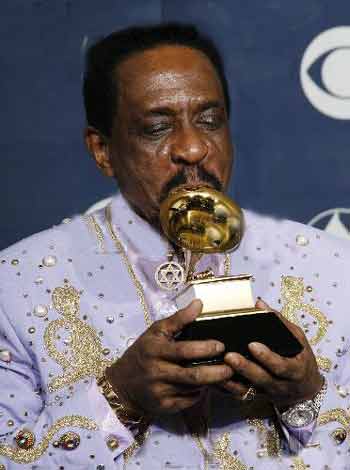Ike Turner holds the Grammy for Best Traditional Blues Album, for “Risin With the Blues”