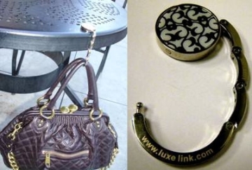 Created by a couple of clever NYU students, the small chrome piece allows you to attach your handbag to the edge of just about any table. About the size of a silver dollar, or one of Beyonce’s hoop earrings, the Luxe Link has already won over celebrity fans like Tori Spelling and Lindsay Lohan
