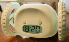 It is a clock for people who have trouble getting out of bed. When the snooze bar is pressed, Clocky rolls off the table and finds a hiding spot, ends up in new place every day.