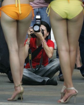 9)A photographer takes pictures of candidates of Miss Philippines Earth 2007 during a press presentation at the financial district of Makati, south of Manila