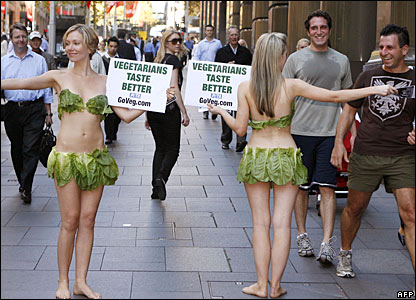 There were two Australian Lettuce Ladies, Lana Went and Kristi-Anna Brydon, wearing bikinis made of real lettuce leaves, urging commuters and passers-by to go vegetarian during a PETA’s protest in Sydney recently. They are brave and fearless in delivering their ideology. Want to know more about Lettuce Ladies? Click here.