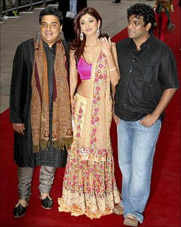 Shilpa Shetty flanked by director Anurag Basu(right)and producer Ronnie Screwvala (left) , Photo 5