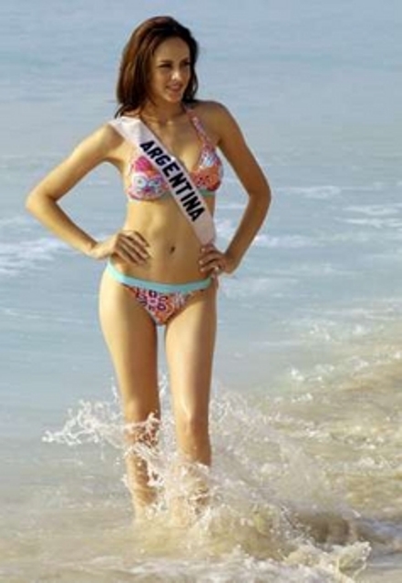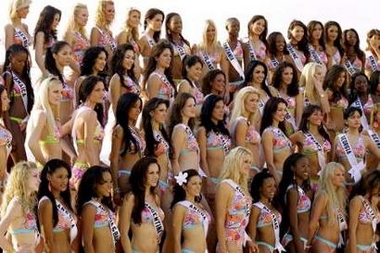 Miss Universe contestants pose for a group photo for the swimsuit section of the Miss Universe pageant in Cancun May 11, 2007.