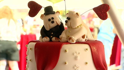 This is a delicious wedding cake for those doggie! More than 178 dog couples (356 individual dogs) tied the knot. That unofficially breaks the world record of 27, set in the Netherlands, according to organizers of the Bow Wow Vows. Besides, the event raised about $3,000 for animal rescues and it was a fabulous celebration of puppy love!