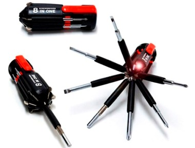 Looking for cool and stylish multi-screwdriver? This is an 8-in-one multi-screwdriver torch which features a distinctive design that bringing seven different blades and the LED bulb as well to make you more convenient. Besides, the screwdriver is built like an octopus to make it easy to see and find!