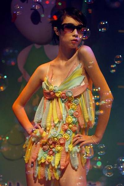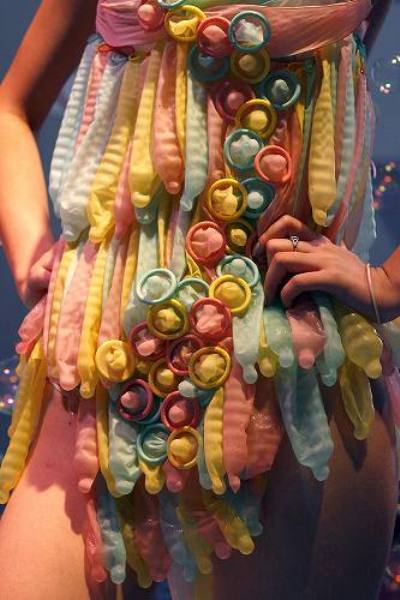 A whole new dimension of condoms design wearing all over the models with the cutest of all is the lollipops. Also, the event comes with the special effects of soap bubble to show off the most daring outfits made entirely of condoms. Followings are photo shoot of the unique ever parades of all time.
