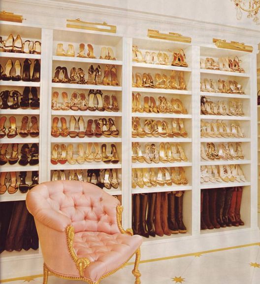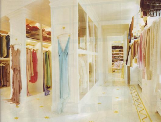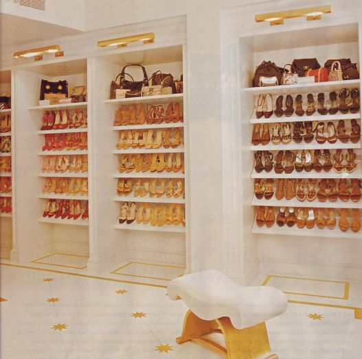 Mariah Carey, 37-year-old has about 1,000 pairs of shoes but a lot are in the storage. She designed the gold-leaf and bleached-wood floor in the shoe closet. “Like Louis Vuitton luggage,” she says, “It will only look better over time”. Her dressing room is definitely a paradise for many ladies.