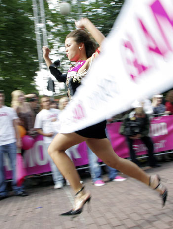 New sports competition as 100 Russian women took part in 100-metre race wearing high heel shoes in five Russian cities between July 16-28, 2007. The only requirement for the run was to wear high heel shoes with minimum height of 3.5 inches.
