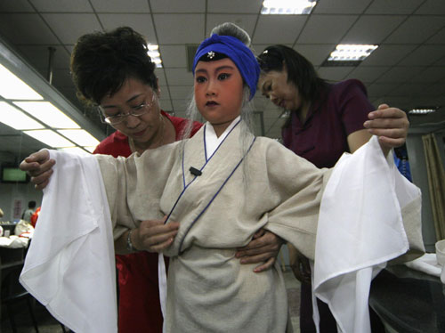 About 50 children from all parts of China were took part in a Child Peking Opera Competition in North China’s Tianjin on July 31, 2007. The competition lasts for three days. The children wore beautiful costumes with traditional opera make-up. Many of them performed very well and in professional manner, seem like they have been trained for long time.