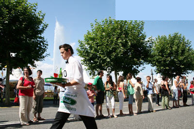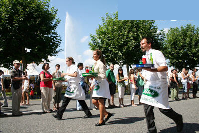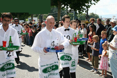 More than 100 waiters and waitresses took part in an annual race in Geneva, Switzerland on August 12, 2007. However, this race is fun because the runners must carry trays while running. Two glasses of water and two bottles of beverage were on a tray and the participants in aprons have to carry the tray in the 1,000-meter race.