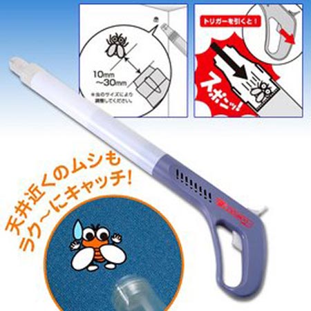 This insect vacuum gun is another innovative gadget of Japanese. If you have nothing to catch the insect and feel nasty to squish it, then this gadget is good for you. This insect catcher looks like a gun about 2-ft long with a hole about one-inch in diameter at the end of the catcher. It operates like a vacuum gun. It will suck up insects by aiming the end of the insect catcher about an inch away from the insect.