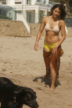 Michelle Rodriguez in her bikini enjoyed on the beach. She doesn’t like man but men like to see her wearing sexy. She looks alright in bikini and she seems healthy. Perhaps she was lonely that day because only a dog accompanied her on the beach. See some photos of the sexy beauty in bikini.