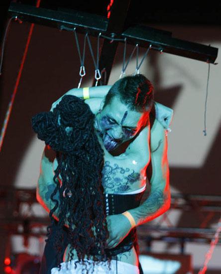 A tattoo expo was held in Moscow on August 25, 2007. People with unique, funny and creative tattoos were there to show up the great work of arts. However, what really attracted the visitors was the scary performance by some crazy people who hooked themselves up.