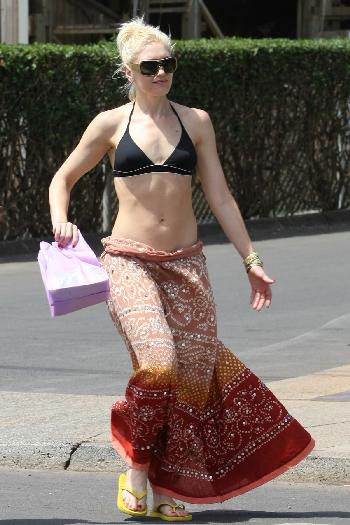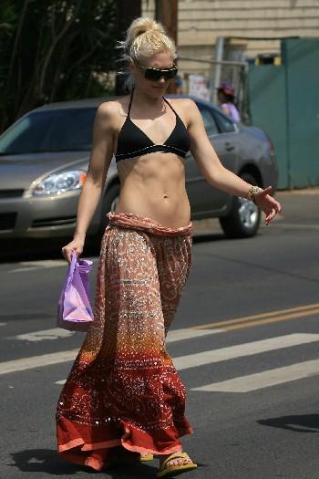 Bikini really fits Gwen Stefani, she was so sexy in bikini even she is not busty. Look at her flat stomach; she has a kid but still managed to maintain her body figure especially her waistline. Some people even without kid but get fat and possess big spare tyre on their body. Maybe all of us should start dancing, which I believe it helps Gwen Stefani looks fit.