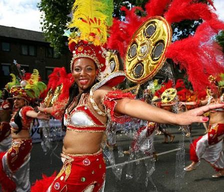 Notting Hill Carnival Started as a local festival set up by the West Indian immigrants of the area, it has now become a full-blooded Caribbean carnival. Performers with bright, colourful and outlandish costumes were dancing on the streets during the parade.