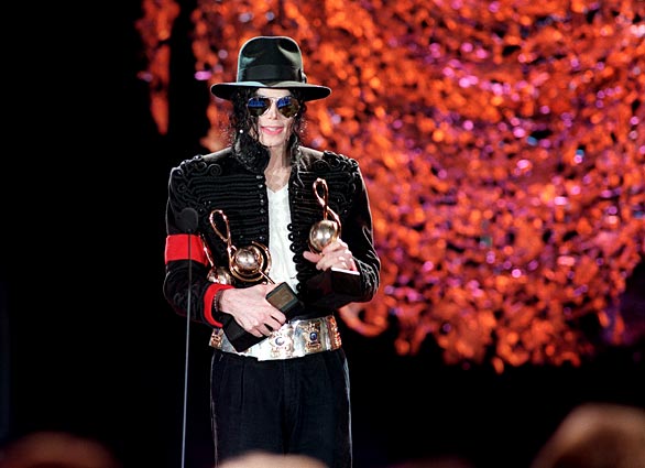 Michael Jackson thanks fans after winning three World Music Awards in Monaco in May 1993.