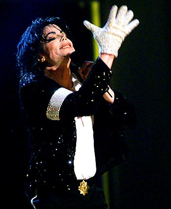 Michael Jackson sings with his trademark white glove during his “30th Anniversary Celebration: The Solo Years” concert in 2001 at New York’s Madison Square Garden.