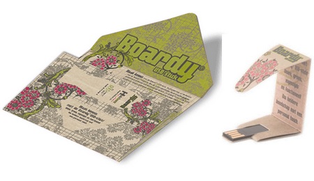 The Dutch company, Boardy Products has introduces the Boardy USB Stick that is basically a USB drive made of recyclable paper. The unique Boardy stick is foldable and is super lightweight at just 2 grams. The Boardy USB stick is probably a great promotion tool for your company or yourself as there is a large printable area for your own logos, text and graphics.