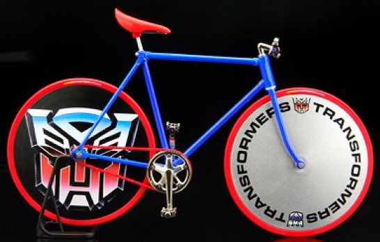 Japanese company Pedal ID caters to bike-lovers with small apartments, making tiny 1:9 scale bike kits, and what you see above is one of two special edition Transformers kits.